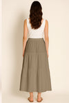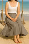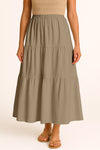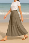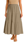 Moomaya Women's Elastic Waist Skirt | Solid Bohemian Style Rayon Maxi with Side Pockets | Tiered Flowy Skirt with Pockets
