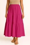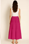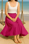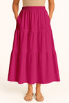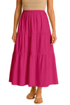 Moomaya Women's Elastic Waist Skirt | Solid Bohemian Style Rayon Maxi with Side Pockets | Tiered Flowy Skirt with Pockets