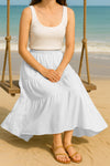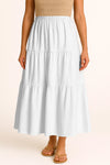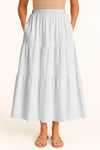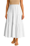 Moomaya Women's Elastic Waist Skirt | Solid Bohemian Style Rayon Maxi with Side Pockets | Tiered Flowy Skirt with Pockets