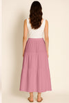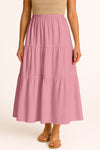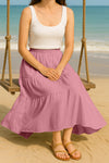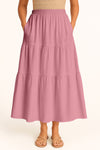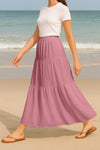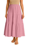 Moomaya Women's Elastic Waist Skirt | Solid Bohemian Style Rayon Maxi with Side Pockets | Tiered Flowy Skirt with Pockets