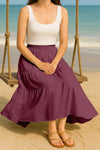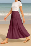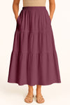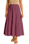 Moomaya Women's Elastic Waist Skirt | Solid Bohemian Style Rayon Maxi with Side Pockets | Tiered Flowy Skirt with Pockets