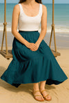 Moomaya Women's Elastic Waist Skirt | Solid Bohemian Style Rayon Maxi with Side Pockets | Tiered Flowy Skirt with Pockets