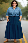 Rayon Renaissance Style Skirt with Elastic Waist & Pockets