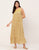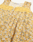 Features: Sleeveless, Square Neck, Lace Work On Yoke, Frill Flared Hem, Printed Pattern On All Over.