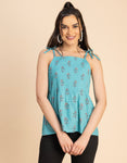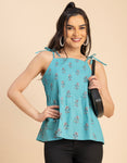 Shoulder Straps Square Neck Pin Tucks Cotton Top