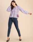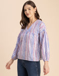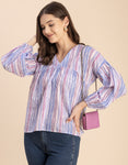 Tags: Printed Tops For Women, Summer Tops For Women, Stripe Print Tunics, Stripe Print Tops, V Neck Tops For Women, Long Sleeves Tops For Women, Casual Tops For Women