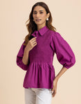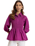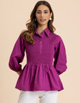 Solid Peplum Style Regular Casual Shirt Top For Women