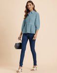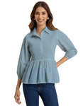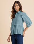 Solid Peplum Style Regular Casual Shirt Top For Women