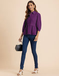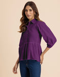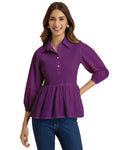 Solid Peplum Style Regular Casual Shirt Top For Women