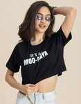Round Neck Crop T-Shirt, Chic Casual Tee