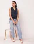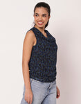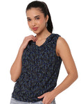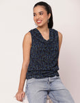 Sleeveless Cowl Neck Printed Women's Elegant Top