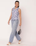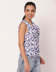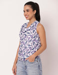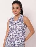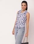 Sleeveless Cowl Neck Printed Women's Elegant Top
