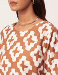 Features: Round Neck, Long Sleeves, Diagonal Hem, Lightweight And All Over Printed Pattern