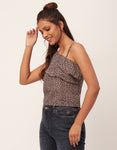 One Shoulder Ruffled Crop