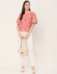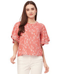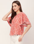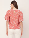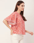 Printed Lace Flutter Top