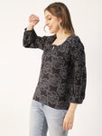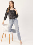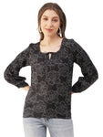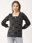 Printed Balloon Tie-Up Top