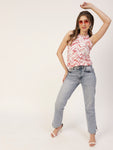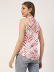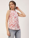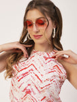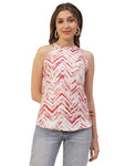 Features: round neck, sleeveless, strap shoulders, long length, lightweight and Styled Back, all over printed pattern