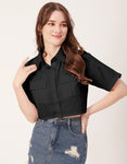 Printed Collared Crop Top